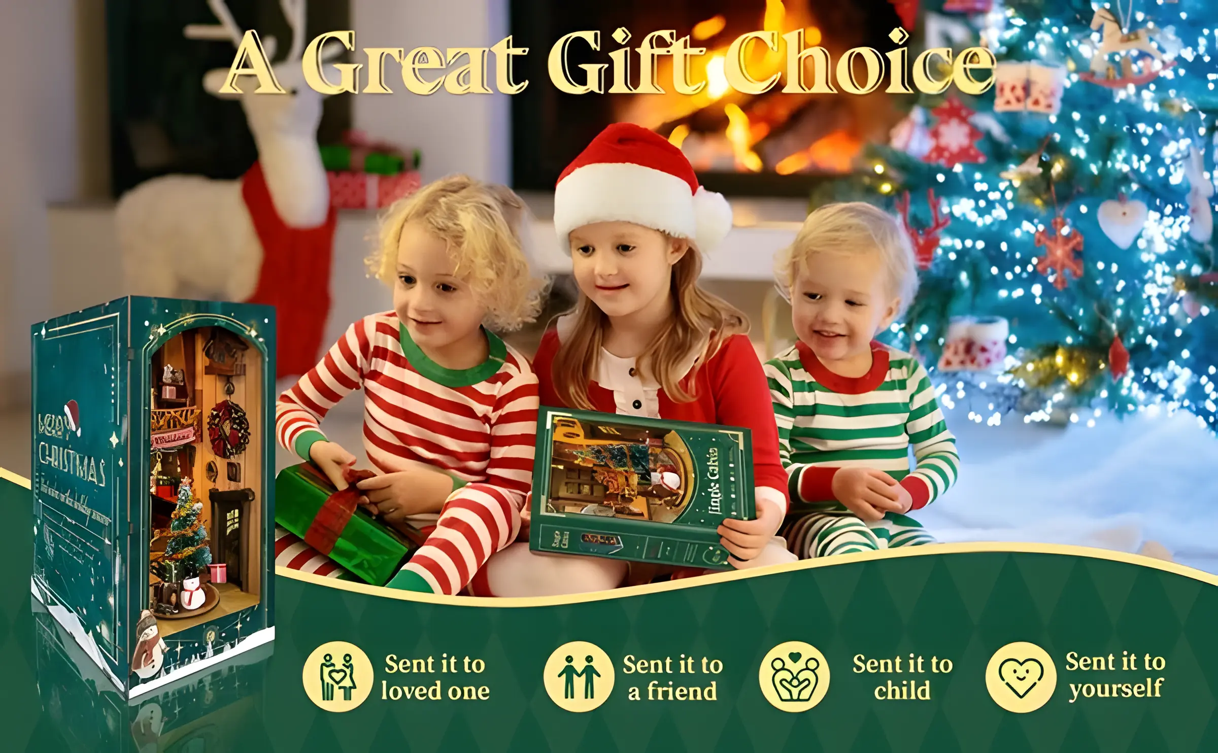 Experience the warmth and joy of the holiday season with the Christmas-Style Jingle Cabin DIY Book Nook Kit from Rofuntime. This beautifully detailed Christmas book nook kit invites you to build a miniature winter cabin bursting with festive spirit.