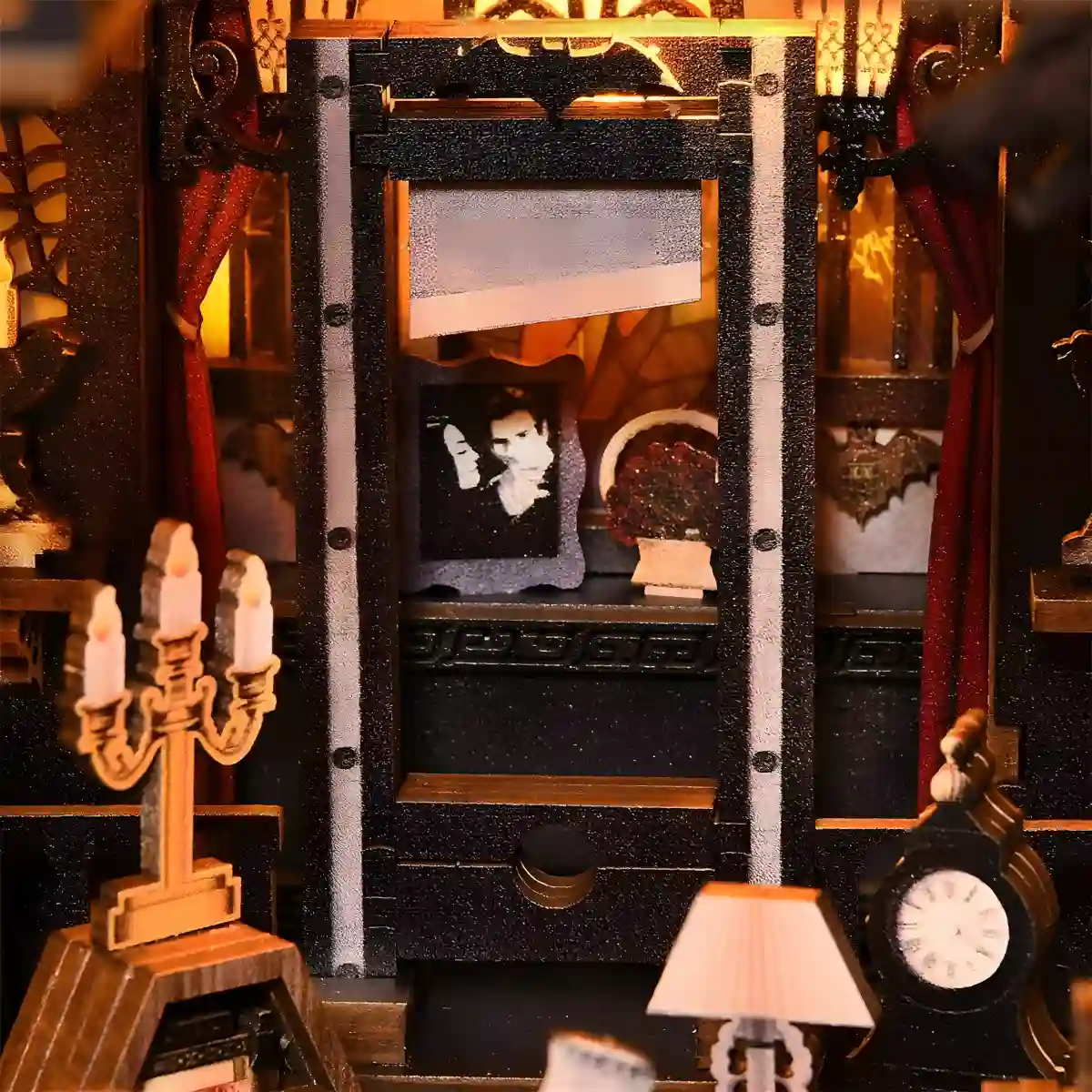 The Dark Family book nook captures mystery, fantasy, and gothic charm in one DIY kit. It brings together supernatural details, vintage design, and warm lights to create a miniature haunted castle. Now, bring this magical gothic world into your home—whether as a Halloween showpiece, a bookshelf insert, or a unique gift, it’s the perfect way to celebrate dark elegance.