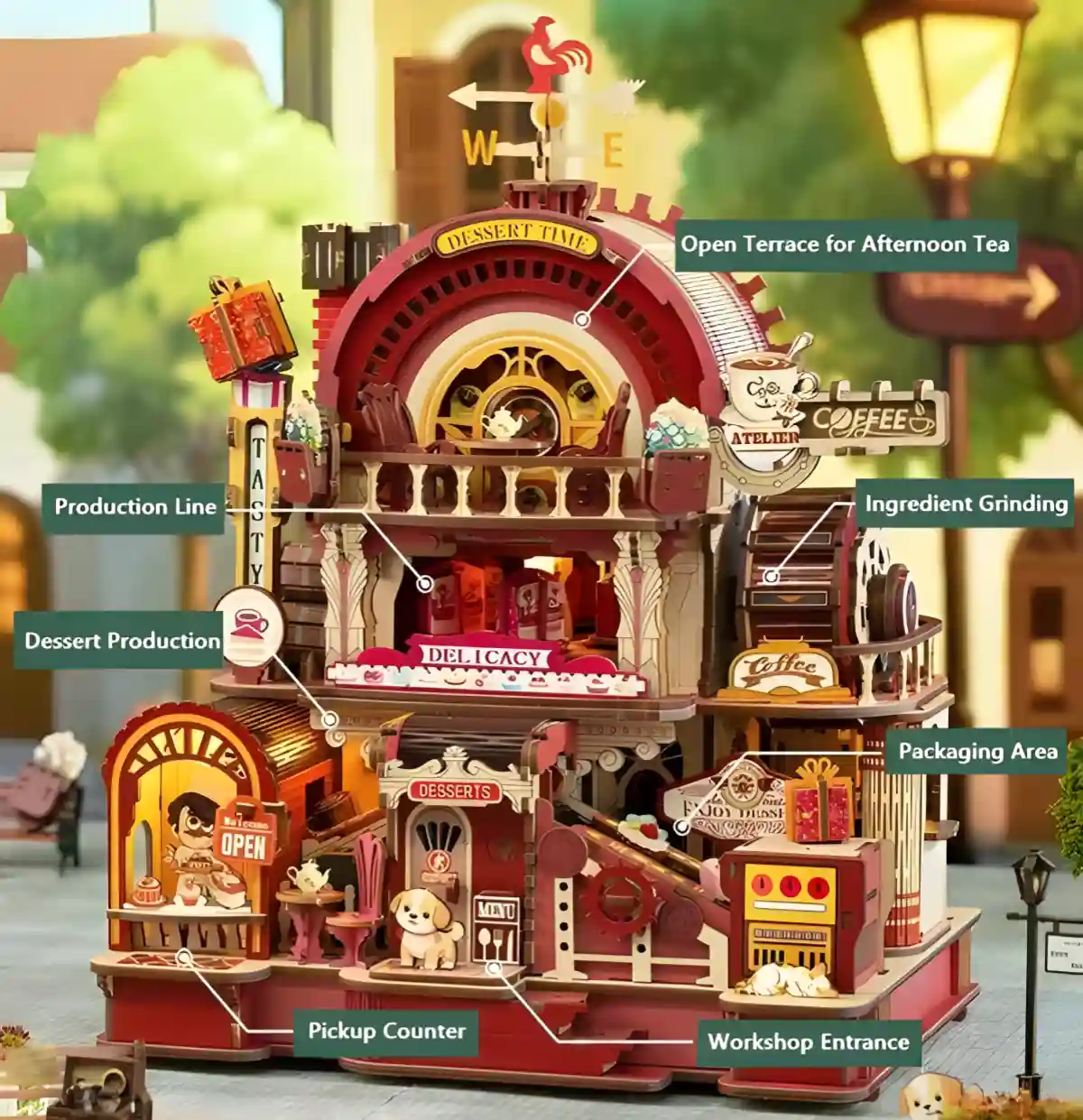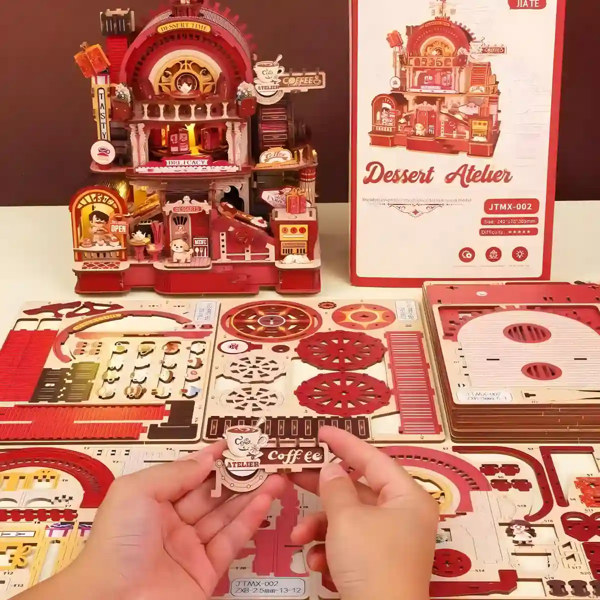 Crafted with precision-cut wood, mortise-and-tenon joints, and UV-printed details, the Dessert Workshop ensures durability and beauty. Illustrated step-by-step instructions make it approachable for hobbyists and advanced builders alike. Once complete, it serves as a stunning piece of home décor or a thoughtful handmade gift.