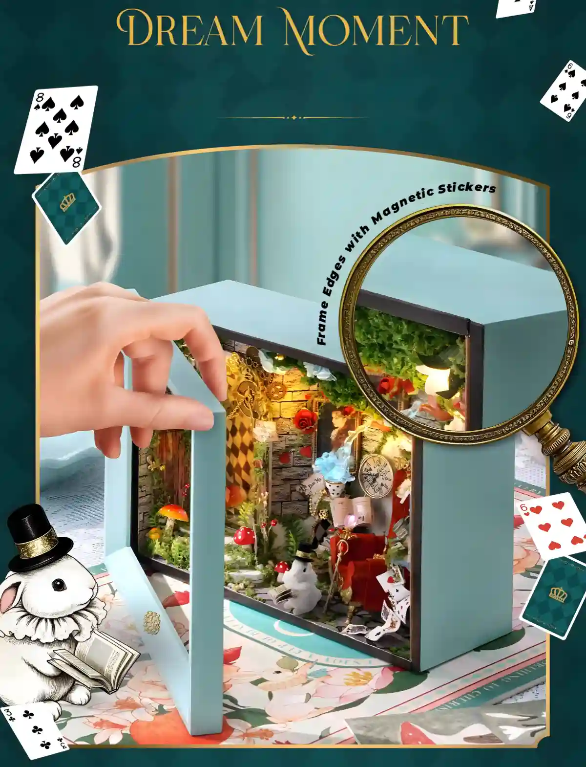 Our Dream Moment Miniature House combines fantasy, storytelling, and craftsmanship to immerse you in a whimsical mirrored wonderland. Designed with inspiration from Alice’s Adventures in Wonderland, this kit allows you to build a miniature world filled with magical details, glowing effects, and fairy tale nostalgia. Whether you’re crafting or displaying, the experience is as enchanting as the finished creation.