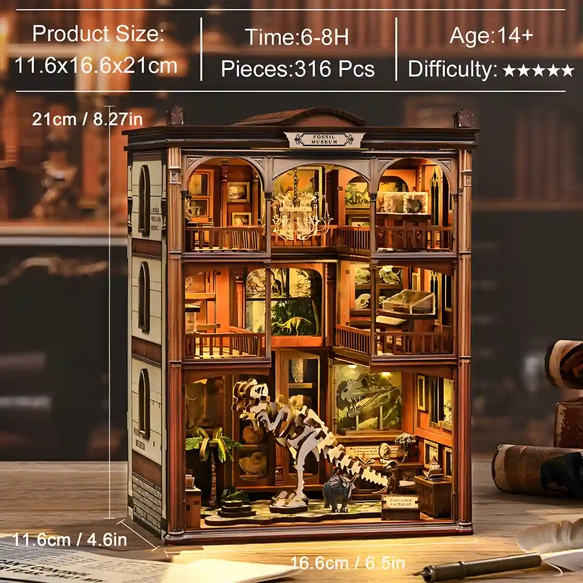 Functionally, it also serves as a sturdy bookend, combining organization with artistic display. If you enjoy immersive environments such as the Western Town DIY Book Nook Kit, the Fossil Museum offers a quieter, more contemplative alternative rooted in history and science.
