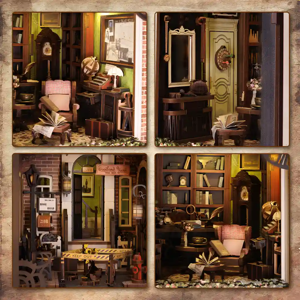 Step into the private office of a legendary sleuth. This book nook detective agency includes everything from rotatable globes to secret drawers—perfect for fans of Sherlock Holmes book nook kits and crime-solving décor. Use the clues and collaborate with fellow “detectives” as you bring each case to life.