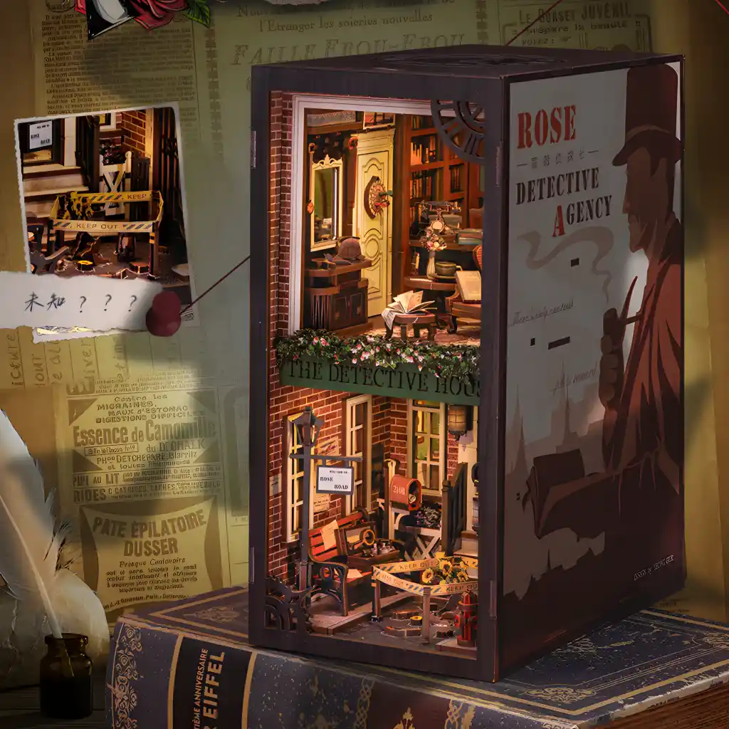 The Rose Detective Agency Book Nook Kit by Rofuntime lets you immerse yourself in a miniature detective office straight out of classic literature. As you assemble this intricately designed detective agency book nook, you’ll experience the world of investigation, deduction, and mystery-solving—right on your bookshelf.