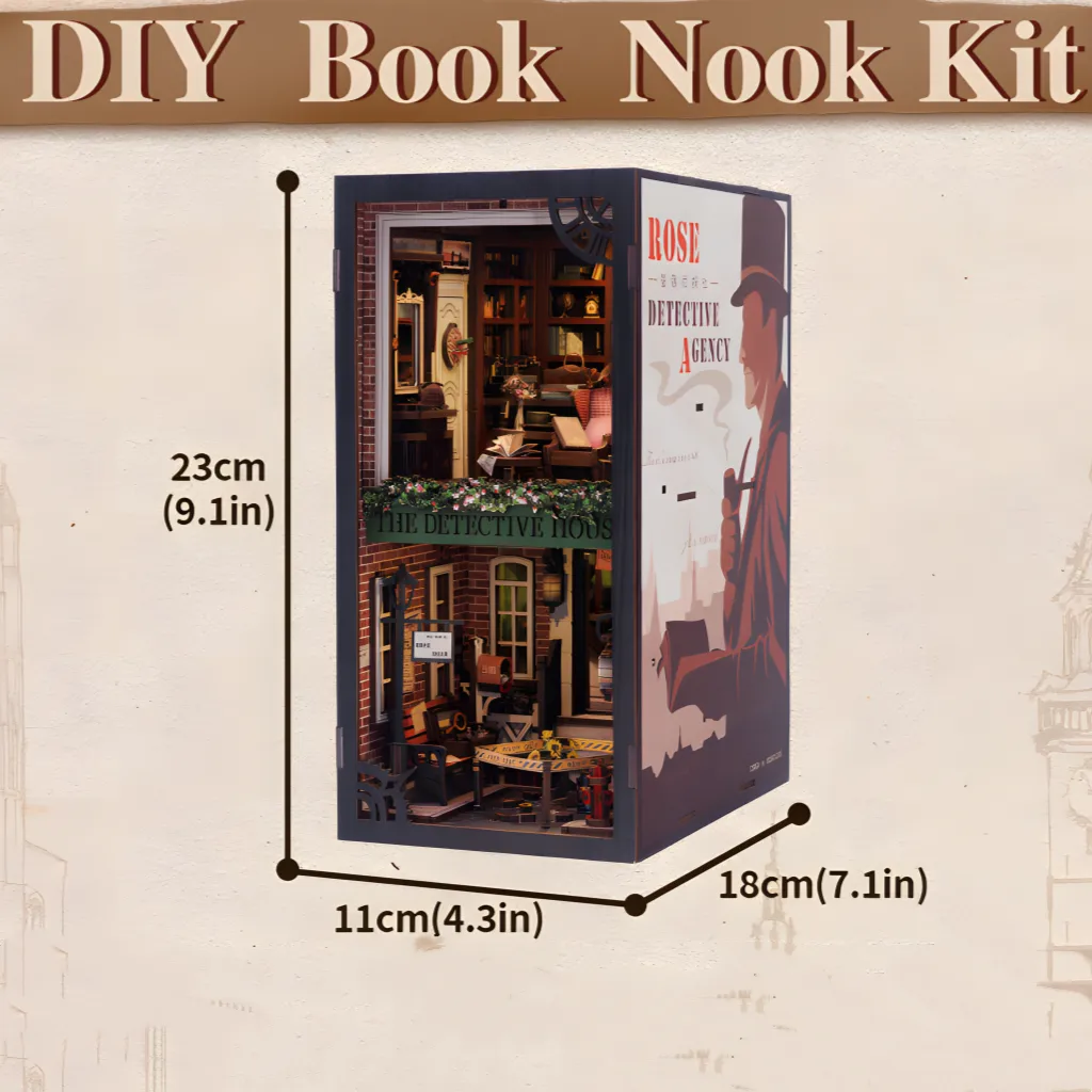 Enhance your shelf decor with a soft built-in LED light. Whether day or night, your detective book nook kit becomes a glowing mystery scene, perfect for any book lover or décor enthusiast.