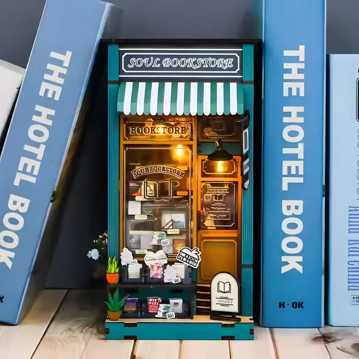 Our Soul Bookstore DIY Book Nook Kit brings the charm of an old-fashioned bookstore to your shelf. This book nook combines craftsmanship, storytelling, and nostalgia into one immersive experience.