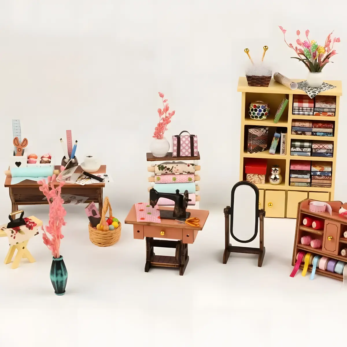 Our Tailor Shop DIY Miniature Dollhouse Kit by Rofuntime brings the charm of a nostalgic sewing studio into your home. Designed for beginners, this Tailor Shop Dollhouse highlights the artistry of sewing and the beauty of slow living.