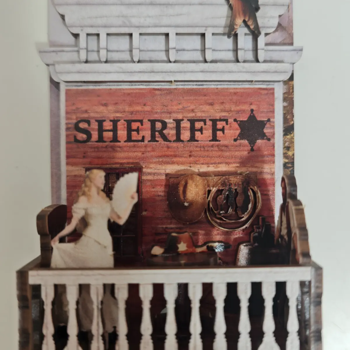 It enhances the vintage Western feeling while giving your display a clear narrative setting.